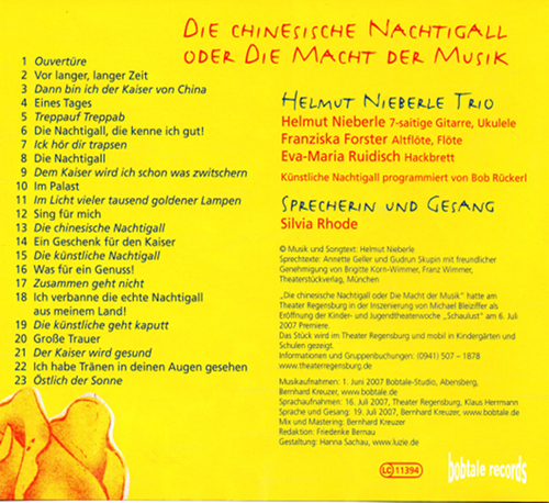 Helmut Nieberle - 7-string guitar, Ukulele Franziska Forster - Altflöte, Flöte Eva-Maria Ruidisch - Hackbrett Silvia Rhode - Sprecherin u. Gesang
